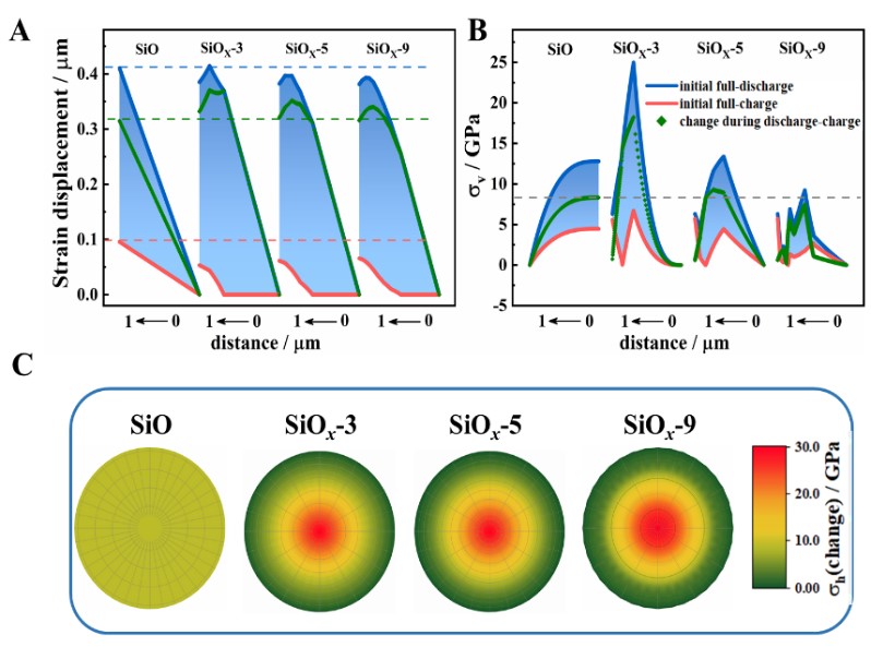 九游在线物理与能源学院林应斌教授和黄志高教授课题组提出了构建硅氧化钛梯度变化提升氧化亚硅材料性能新策略,从理论上预测并从实验上验证,揭示硅价态平缓梯度助于缓解SiOx的塑性变形,在SiOx颗粒内部形成缓和的应力梯度,消除锂化/去锂化过程中局部应力,减小充电态与放电态之间颗粒表面的应力变化,确保稳定的SEI膜和增强的锂离子动力学扩散。这一简单有效的策略为SiOx材料的性能改性和开发提供了新思路。该研究成果以“Boosting the cell performance of the SiOx@C anode material via rational design of a Si‐valence gradient”为题发表于《Carbon Energy》并遴选为封面论文。该论文第一单位为九游在线(中国),九游在线陶剑铭博士为第一作者,九游在线林应斌教授和李加新教授为共同通讯作者。该研究得到国家自然科学基金项目、中央引导地方科技发展资金以及福建省杰出青年科学基金的支持。