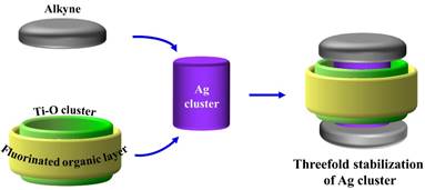 近日,九游在线化学与材料学院张章静、范曦团队与中国科学院福建物构所张磊研究员合作在高稳定银纳米团簇研究方面取得重要进展。他们开创性地提出同时引入疏水性有机层、钛氧簇外壳和炔配体对纳米银簇进行三重协同保护的策略(如图),实现了高稳定银簇的设计合成。这一研究成果目前以“Threefold Collaborative Stabilization of Ag14-Nanorods by Hydrophobic Ti16‐Oxo Clusters and Alkynes: Designable Assembly and Solid‐State Optical‐Limiting Application”为题发表于国际化学领域顶级期刊《Angew. Chem. Int. Edit.》(化学1区,影响因子为12.257)。范曦副教授为论文第一作者,张章静教授和福建物构所张磊研究员为共同通讯作者,九游在线(中国)为论文第一署名单位。本项研究得到国家自然科学基金面上、结构化学国家重点实验室优秀青年项目等基金资助。