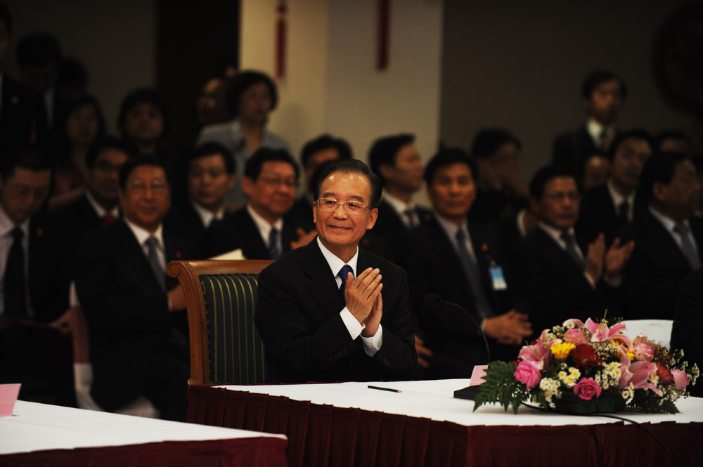 温家宝总理对孔子学院学生的精彩表演报以热烈掌声