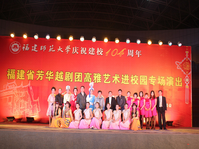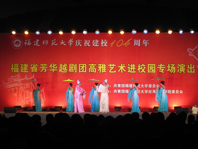 11月12日晚,由校团委主办、应用科技学院团委承办的庆祝建校104周年暨福建省芳华越剧团高雅艺术进校园专场演出在仓山校区综合体育馆举行。校纪委书记许歌平、副校长凌启淡和师生代表1200多人一同欣赏了文艺演出,齐祝母校生日快乐。