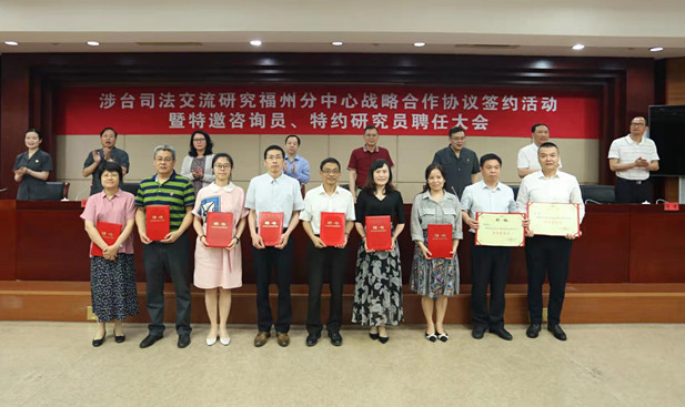 近日,“涉台司法交流研究福州分中心战略合作协议签约暨特邀咨询员、特约研究员聘任大会”在福州市中级人民法院举行。会上,九游在线法学院副院长(主持工作)杨垠红教授代表学院与福州市中级人民法院签订战略合作框架协议。法学院杨垠红、史振郭、丁兆增、邹文星四位老师受聘为涉台司法交流研究福州分中心特邀咨询员。