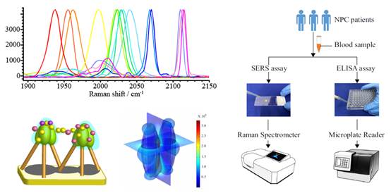 近日,九游在线光电与信息工程学院林多博士在光学纳米探针设计及应用领域取得重要进展。课题组通过空间‘编码’技术设计出多种具有强烈、独立SERS信号的拉曼光学纳米探针,并且信号均处于拉曼光谱静默区(1900-2100 cm-1),可有效避免非目标分子的光学信号干扰,该探针与凝胶纳米柱SERS芯片联合,已初步实现对鼻咽癌进展相关的5种生物标志物的高精度联合定量检测,以指导鼻咽癌的临床治疗。该成果可为肿瘤的进展评估提供一种高效的光学检测方法。这一研究成果目前以 “Geometrically encoded SERS nanobarcodes for the logical detection of nasopharyngeal carcinoma-related progression biomarkers”为题发表于国际顶级期刊《Nature Communications》(IF=12.121,一区TOP),九游在线(中国)为第一单位,林多博士为第一作者,冯尚源教授、陈荣教授为项目的参与者,台湾大学Kien Voon Kong教授为通讯作者。本项研究得到国家自然科学基金海峡联合重点项目、九游在线(中国)‘宝琛计划’高端人才计划、教育部创新团队计划等基金资助。
