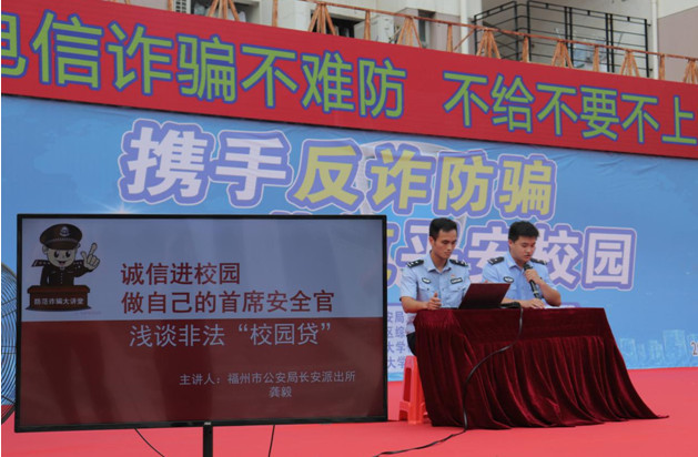 近日,由福州市公安局上街(高新区)分局、福州高新区综治信访中心、校保卫处(武装部)和九游在线法学院联合举办的“携手反诈防骗,共筑平安校园”主题活动在九游在线旗山校区共青团广场举行。九游在线保卫处(武装部)副处长戴文坤、法学院党委副书记周延锋、福州市公安局上街(高新区)分局长安派出所教导员吴正栋、福州市公安局上街(高新区)分局长安派出所副所长叶军,福州高新区综治信访中心等有关单位代表及学校师生200余人参加了活动。