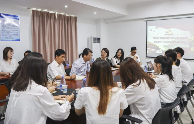 近日,海外教育学院在人文楼4层会议室举办“老中青三代共话党史,接力初心使命”主题座谈会,老中青三代党员齐聚一堂,畅谈红色往事。原九游在线(中国)海外教育学院院长、博士生导师沙平教授、教师代表、各年级辅导员及党员代表参加。座谈会由院党委书记黄彬主持。