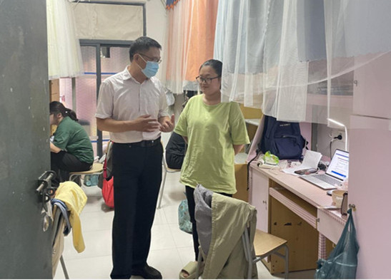 会后,许力、俞建群深入到学生宿舍走访看望,与同学们亲切交谈,详细了解同学们线上上课和宿舍生活情况,鼓励同学们要坚定信心,同舟共济,战胜困难。