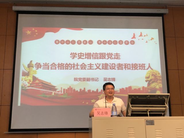 副书记吴志锋为新生带来党史学习教育第一课“学史增信跟党走,争当合格的社会主义建设者和接班人”。他与学生回顾党的光辉历史,体会当今幸福生活来之不易,引导大家学党史、感党恩;结合习近平总书记青年时期的奋斗历程,引导大家牢记习总书记对新时代青年的谆谆教导和殷切嘱托,勉励学生不负韶华,奋进新时代。