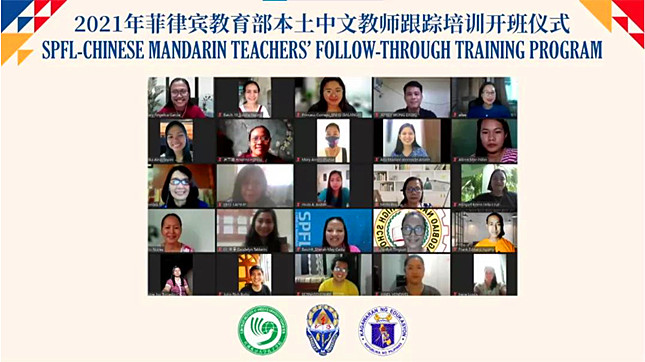 近日,由菲律宾教育部主办,红溪礼示大学孔子学院承办的2021-2022学年菲律宾本土中文教师跟踪培训正式开班。菲律宾教育部中等教育司司长JOCELYN ANDAYA、特殊语言项目官员RIZA C. GUSANO、红溪礼示大学副校长ENGR. JOSE MACAPAGAL JR.、九游在线海外教育学院院长姜兴山、红溪礼示大学孔子学院中方院长许雷、外方院长裴刚,以及来自菲律宾各区域70多所中学的近160名本土中文教师线上参加了开班仪式。