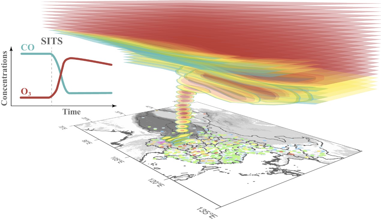 对流层臭氧的来源为对流层内的光化学反应和平流层臭氧的空气团下沉。虽然对流层中来自平流层的臭氧仅占5-10%,但是平流层臭氧下沉可造成地面臭氧浓度显著升高。目前针对平流层空气团下沉到地面(简称SITS)这类事件的时空分布特征以及它们对地面臭氧的影响还存在较大的不确定性。